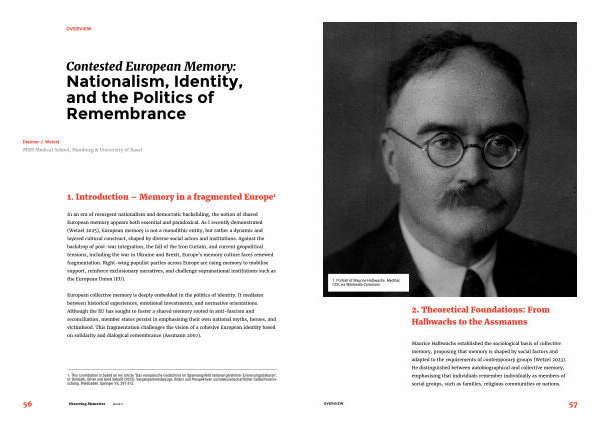 Maurice Halbwachs established the sociological basis of collective memory, proposing that memory is shaped by social factors and adapted to the requirements of contemporary groups( Wetzel 2023). He distinguished between autobiographical and collective memory, emphasising that individuals remember individually as members of social groups, such as families, religious communities or nations. overview