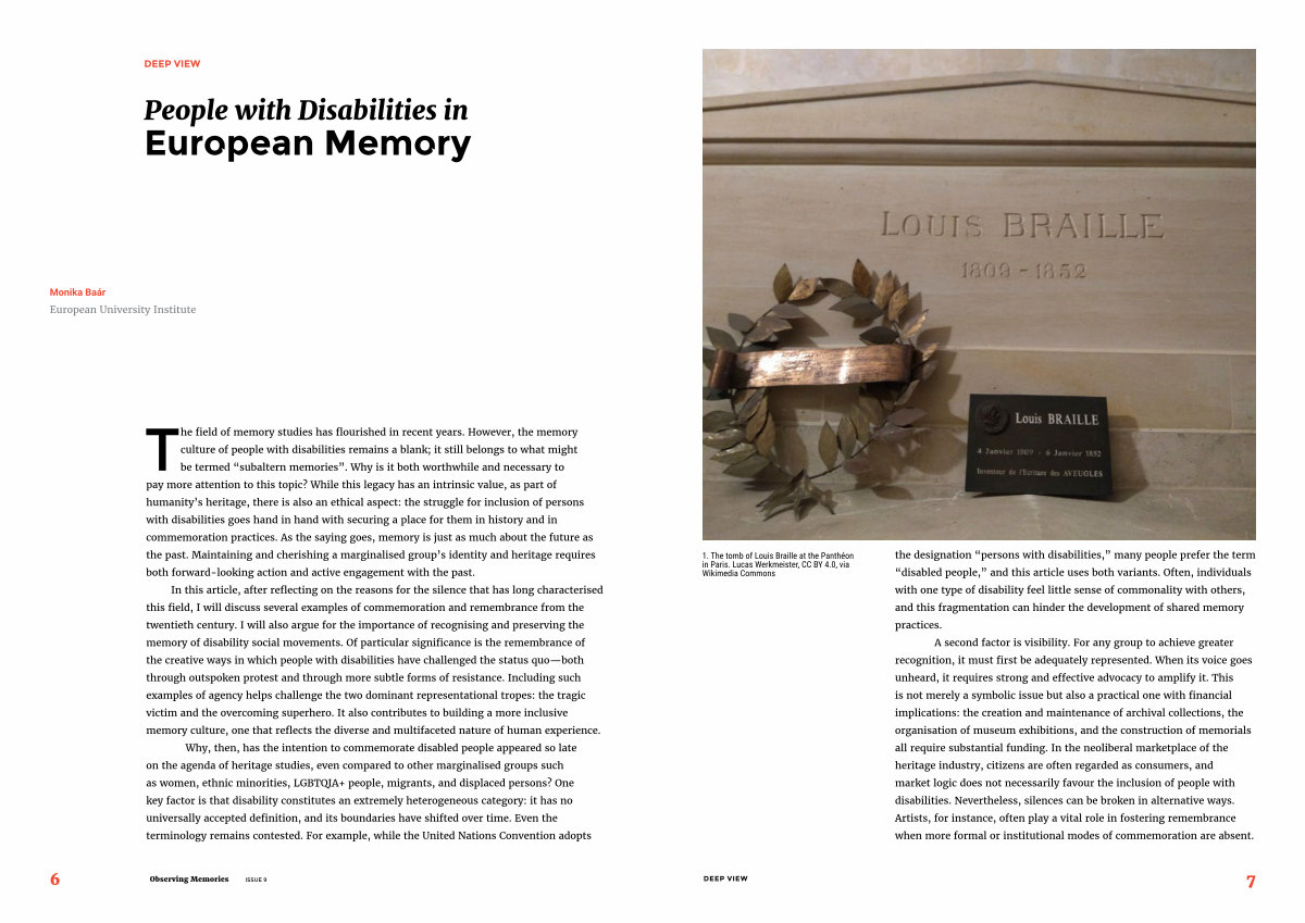 1. The tomb of Louis Braille at the Panthéon in Paris. Lucas Werkmeister, CC BY 4.0, via Wikimedia Commons the designation“ persons with disabilities,” many people prefer the term“ disabled people,” and this article uses both variants. Often, individuals with one type of disability feel little sense of commonality with others, and this fragmentation can hinder the development of shared memory practices.