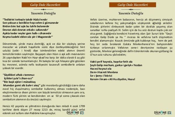 candan Galip Dede ya Hu ‘’ mısrası ile vefatına tarih düşmekten