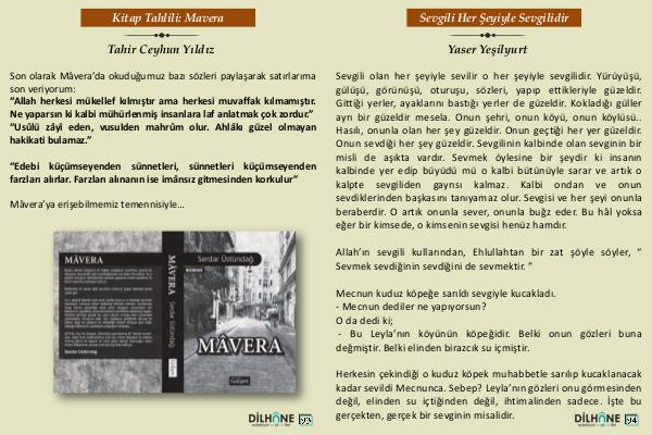 Son olarak Mâvera’da okuduğumuz bazı sözleri paylaşarak satırlarıma