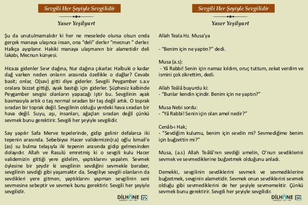 sevmek bunu gerektirir. Sevgili her şeyiyle sevgilidir.