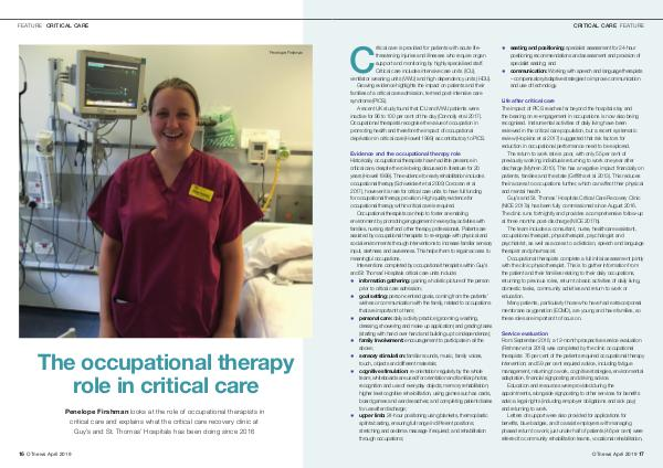 occupational therapy (Schweickert et al 2009; Corcoran et al