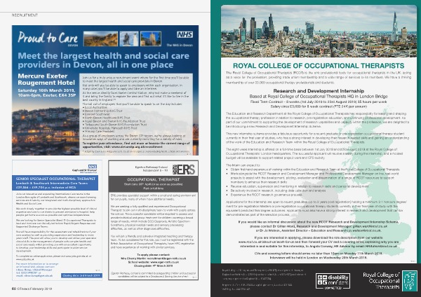 Occupational Therapists’ London headquarters. The successful applicant will receive a salary during the internship, and a modest