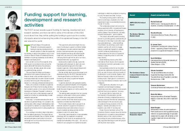 The RCOT annual awards support funding for learning, development and