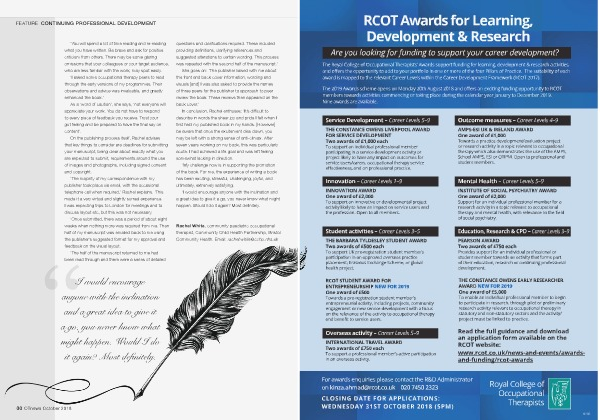The 2019 Awards scheme opens on Monday 20th August 2018 and off ers an exciting funding opportunity to RCOT