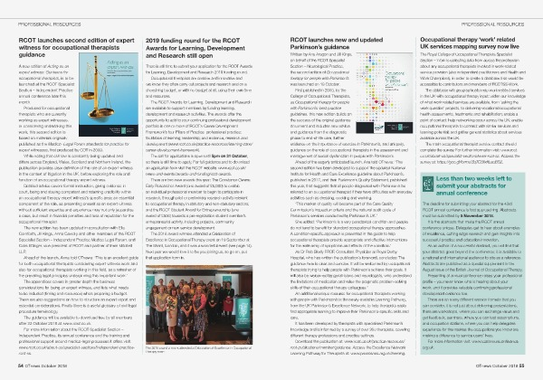 As Dr Rob Skelly FRCP, Consultant Physician at Royal Derby Hospital, who has written the publication’ s foreword, concludes: The guidance here is clear and concise. It will be welcomed by occupational therapists trying to help people with Parkinson’ s achieve their goals. It will also be welcomed by geriatricians and neurologists, who understand the limitations of medication and value the pragmatic problem-solving skills of their occupational therapy colleagues.’