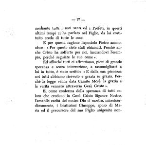 Ed affinché tutti ci affrettiamo , pieni di grande speranza e senza interruzione , a rassomigliarci a lui in tutto , è stato scritto : « E dalla sua pienezza noi tutti abbiamo ricevuto e grazia su grazia . Perché la legge venne data tramite Mosè , la grazia e la verità vennero attraverso Gesù Cristo ». E , come conferma della speranza di tutti coloro che credono in Gesù Cristo Signore Nostro , l ’ amabile carità del nostro Dio ci mostrò , misericordiosamente , i beatissimi Giuseppe , sposo di Maria ed il precursore del suo Figlio unigenito non-