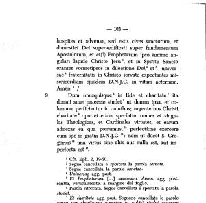 Apostolorum , et et (!) Prophetarum ipso summo angolari lapide Christo Jesu et in Spirito Sancto orantes vosmetipsos in dilectione Dei , 2 et3 universae4 fraternitatis in Christo servate expectantes misericordiam ejusdem D . N . J . C . in vitam aeternam . Amen . 5 /