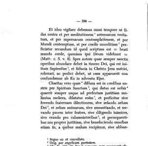 Charitas vero quae4 diffusa est in cordibus nostris per Spiritum Sanctum5 , qui datus est nobis6 quaerit semper usque ad perfectam justitiam molimina meliora , dilatatur enim7 , et perficitur sive fovendo fratemam dilectionem , sive zelando zelum