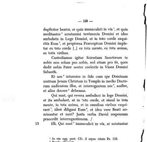 dupliciter beatos , et quia immaculati in via \ et quia meditantes12 scrutamini testimonia Domini et ideo ambulatis in Lege Domini , et in toto corde exquiritis Eum3 , et propterea Praeceptum Domini impletur ex toto corde [,] ex tota mente , ex tota anima , ex totis viribus .