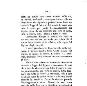 beati , sia perché siete senza macchia nella via , sia perché , meditando , investigate intorno alle testimonianze del Signore e pertanto camminate secondo la legge di lui e di lui andate in cerca con tutto il cuore ; per questo il comandamento del