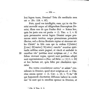 lexi legem tuam , Domine ? Tota die meditatio mea est = ( Ps : 118 . v . 97 ). Puto , quod vos intelligitis , eum , qui in via Domini ascendit usque ad diligendum Praeceptum Domini , illum esse de quo Paulus dicit = Sciens hoc , quia lex justo non est posita = ( 1 . Tim : c . 1 . v . 9 ) quia peramanter servat legem Domini ncque poenarum minis territus , neque praemiorum promissis illectus , sed a divina Bonitate raptus ut strenuus miles Christi1 in fide cum spe in eodem Cfhristo ] J [ esu ] D [ omino ] N [ ostro ] cunctis12 munitus spiritualis militiae armis pugnat , et vincit et ambulai in