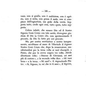 Nostro Gesù Cristo che , dopo la resurrezione , manifestandosi per la terza volta ai suoi discepoli , a Pietro , che pur lo aveva negato tre volte , chiede altrettante volte : « Simone di Giovanni , mi ami più di costoro », e la seconda volta dice : « Mi vuoi bene » e la terza : « Mi ami ?». E rispondendo Pietro : « Si , Signore , tu sai che io ti amo », il Signore ,