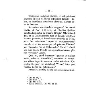 Sancti adimpleatur in S [ acr ] a R [ egia ] Mfaiestate ] Tua , et in Generationibus tuis , ut Regale Sceptrum in omni potentia , et benedictione firmetur in Vobis , juxta Dei voluntatem3 usque ad consumationem4 saeculi ; et ut Vos omnes per adoptionem filiorum5 jam Haeredes Dei et Cohaeredes6 Christi7 effecti una cum dilecto Populo tuo accipiatis aetemam gloriae coronam8 9 . Amen .