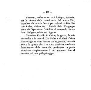 Vincenzo , anche se su tutti indegno , tuttavia , perde viscere della misericordia del nostro Dio , sacerdote del nostro Dio e , per volontà di Dio Nostro Padre , ultimo tra i fratelli della Congregazione dell ’ Apostolato Cattolico al reverendo Sacerdote Hodgson salute nel Signore .