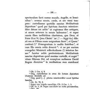 Pater D . ni N . i Jesu Christi5 iat [ I — feggi ha ] dilexit nos ut Filium suum unigenitum darei6 , et Quem7 costituii (!) 8 9Primogenitum in multis fratribus ’, et cum Ilio omnia nobis donavit10 11 12 : et ne per auctam evangelici Ministerii sollecitudinem (!) inimicus homo 11 furetur nobis pretiosissimum Meditationis sanctae depositimi quod maxime custodii , et augetu vitam filiorum Dei , ad exemplum audiamus David