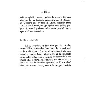 Ed io ringrazio il mio Dio per voi perché , come Iddio ha esaudito l ’ orazione dei poveri , così vi ha scelti e , come Aronne , vi ha chiamati alle cose sante e , con esclusone degli altri , vi ha mandato come sulla vostra terra a fungere da operai della sua messe che si trova sul territorio del dominio britannico , con la comune speranza in Cristo Gesù che , per mezzo vostro , non solo vengano nutrite