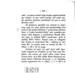 7 nostri in die Judicii Dominus / noster Jesus Christus dicet = Venite benedirti Patris4 mei : possidete paratura vobis Regnum a constitutione Mundi . Esurivi enim , et dedistis Mihi5 manducare : sitivi et dedistis Mihi6 78bibere : hospes eram , et collegistis Me . Nudus et cooperuistis Me ’ : infirmus et visitastis Me : in carcere eram , et venistis ad Me . = ( Matt : c . 25 v . 34 . et seqq ).