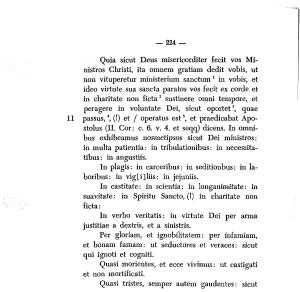11 passus , 4 , (!) et / operatus est5 , et praedicabat Apostolus ( IL Cor : c . 6 . v . 4 . et seqq ) dicens . In omnibus exhibeamus nosmetipsos sicut Dei ministros : in multa patientia : in tribulationibus : in necessitatibus : in angustiis .