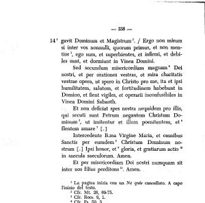 — 238 — 14 * gavit Dominimi et Magistrato12 . / Ergo non mirum si inter vos nonnulli , quorum primus , et non mentior3 , ego sum , et superbientes , et infirmi , et debiles sunt , et dormiunt in Vinea Domini .