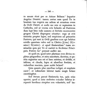 Angelus Domini : tamen certus sum quod Tu in bonitate tua respicis me saltem ut errantem ovem de Ovili Christi , et audis me non ut sapientem in Cathedra , sed ut vocem ovis belantis ad Pastorem dum lupi hinc inde numero et feritate excrescentes gregem Christi dispergere nituntur : ergo ut ovis exterrita propter lupos , sed respiciens ad primarios Pastores , qui sunt in Ovili gaudens cum spe belatus extollo quantum valeo sed in Christo J [ esu ] Dtornino ] N .[ ostro ] : et apud Eminentiam12 tuam nominatila quia per Te et caeteri in Ecclesiae Principatu Fratres tui3 possunt audire me .