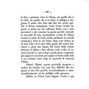 la fine e pertanto tutta la Chiesa , sia quella che è in cielo , sia quella che è in terra , si rallegra e ringrazia il nostro Dio , fino alla fine dei secoli , perché il divino samaritano , Gesù Cristo Nostro Signore , a posto suo ha collocato Pietro con i suoi successori e gli concesse la grazia perché , secondo la necessità di essa , accostandosi a tutta la Chiesa riunita in nome di Gesù , anche mediante un sinodo ecumenico , fasci le sue ferite , dopo aver infuso su di esse l ’ olio ed il vino della grazia del nostro Salvatore e , presi due danari dal tesoro della celeste dottrina , li abbia a dare all ’ oste ( vale a dire ai vescovi ) perché in ogni tempo questi possa comperare gli unguenti necessarii per sanare le ferite nella fede e nei costumi come esige la necessità di ciascuna Chiesa .
