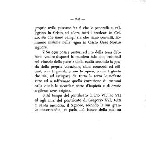 8 Al tempo del pontificato di Pio VI , Pio VII ed agli inizi del pontificato di Gregorio XVI , tutti di santa memoria , il Signore , secondo la sua grande misericordia , ci parlò nel furore della sua ira