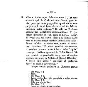 11 affluens 1 innixa super Dilectum suum2 . / Et tunc omnes Angeli de Coelo mirantes dicent , quae est ista , quae speciosior progreditur quasi aurora consurgens , pulchra ut luna , electa ut sol , terribilis ut castrorum acies ordinata3 ? Et dilectus Ecclesiae