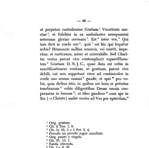ut perpetuo custodientes Gratiam1 Vocationis sanctae2 , et fideliter in ea ambulantes assequamini aeternam gloriae coronam3 . Est4 inter vos , 5 Qui iam dicit in corde suo6 : quis7 est hic qui loquitur nobis ? Homuncio nullius nominis , vel meriti , imperitus , et rusticanus , miser et miserabilis . Sed Charitas vestra parcat viro contemplanti supereffluentem8 Gratiam D . N . J . C ., quae data est vobis in sanctificationem vestram , et gentium , parcat viro debili , cui non suppetunt vires ad continendos in corde suo sensus summi9 gaudii , et spei10 prò vobis , quia diebus istis , in quibus est bora et potestas tenebrarum11 vobis diligentibus Deum omnia cooperantur in bonum12 ; et ideo gaudens 13 cum spe in