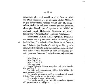 minationis electi , et vocati estis ’ a Deo , et misit vos Deus operarios2 , et ut strenuos Christi Milites3 , ut per Ministerium vestrum veniat illa4 SS . Immaculata Mulier in salutem humani generis promissa ab origine Mundi , quae5 signabatur in ludith6 , et conterai caput Holofernis Gehennae et simul7 restauretur8 Aquaeductus9 omnium Gratiarum .