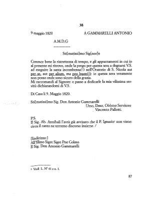 Il Sig- Ab . Annibali l ’ avrà già avvisato che il P . Ignazio1 non viene : circa il canto ne terremo discorso insieme . /