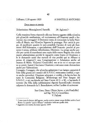 [ Albano , i ] 28 agosto 1820 A SANTELLI ANTONIO