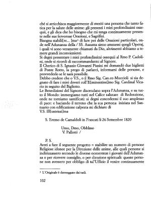 S . Eremo de Camaldoli in Frascati li 26 Settembre 1820