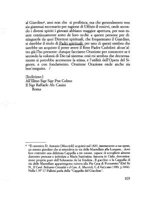 Nella 1 . N ° 17 Pallotti parla della “ Cappella del Giardino ”.