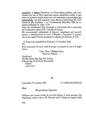 S . Eremo de Camaldoli in Frascati li 17 Ottobre 1820 P . S .