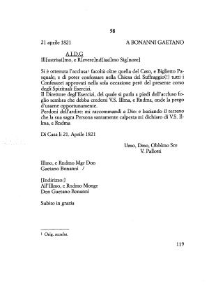 Il Direttore degl ’ Esercizi , del quale si parla a piedi dell ’ accluso foglio sembra che debba credersi V . S . Dima , e Rndma , onde la prego d ’ usarne opportunamente .
