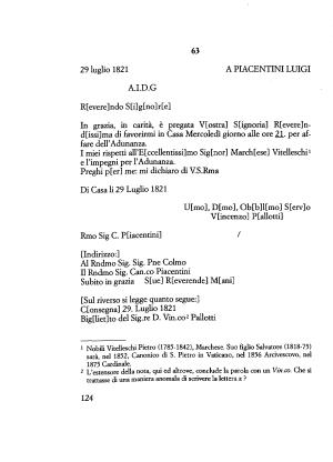 [ Sul riverso si legge quanto segue :] Ctonsegna ] 29 . Luglio 1821 Big [ liet ] to del Sig . re D . Vin . co12 Pallotti