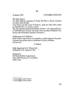 Dalla Sagre [ stia ] di S . M [ aria ] del Suffragio ] li 20 . Ag [ osto ] 1821 /