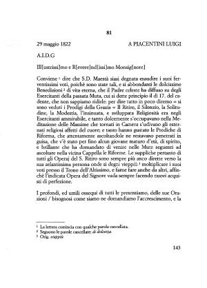 29 maggio 1822 A PIACENTINI LUIGI A . I . D . G Ill [ ustrissi ] mo e R [ evere ] nd [ issi ] mo Monsigfnore ]