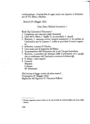[ Sul riverso si legge , scritto da altra mano :] C [ onsegn ] a 29 . Maggio 1822 . Big [ liet ] to del Sig [ no ] r D . Vincenzo Pallotti