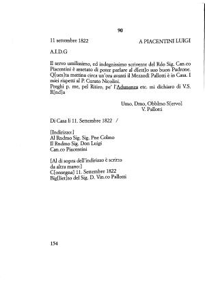 da altra mano :] Ctonsegna ] 11 . Settembre 1822 Big [ liet ] to del Sig . D . Vin . co Pallotti
