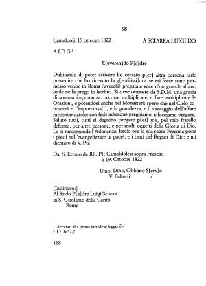 Dal S . Eremo de RR . PP . Camaldolesi sopra Frascati li 19 . Ottobre 1822