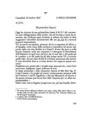 1 Di questa lettera abbiamo soltanto una copia , scritta dallo stesso Sisco e conservata nella raccolta Copie autentiche di scritti del Ven . Vincenzo Pallotti , pp .