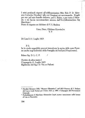 2 Nicolini Silvestro OSB , “ Monaco Silvestrino ”, nel 1823 Parroco di S . Stefano del Cacco ( vedi Notizie per l ’ Anno 1823 , p . 200 ) e Compagno del Procuratore