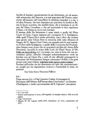 Sangue del N . Signor Gesù Cristo , ma quando però le avrò mandato il Libro delle Indulgenze , e quello della Coroncina del Preziosissimo Sangue sono sicuro che ne acquisterà un ’ idea più chiara della Divozione ; ( inculchi la recita della Lode del SSmo Nome di Dio