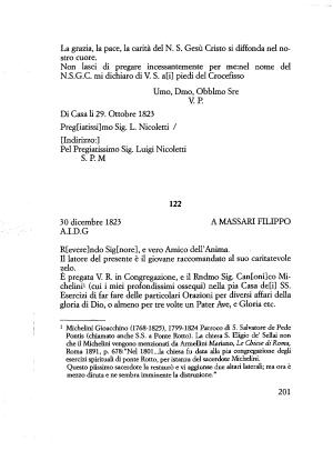 Roma 1891 , p . 678 :” Nel 1801 ... la chiesa fu data alla pia congregazione degli esercizi spirituali di ponte Rotto , per istanza del sacerdote Michelim .