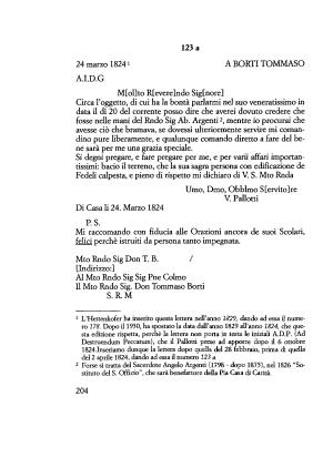 1824 . Inseriamo dunque la lettera dopo quella del 28 febbraio , prima di quella del 2 aprile 1824 , dando ad essa il numero 123 a .