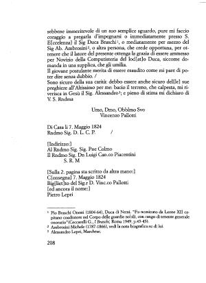 [ Sulla 2 . pagina sta scritto da altra mano :] C [ onsegna ] 7 . Maggio 1824 Big [ liet ] to del Sig . r D . Vinc . co Pallotti