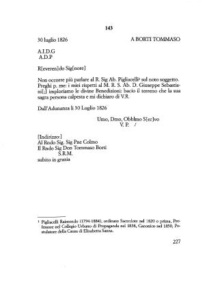 1 Pigliaceli ! Raimondo ( 1794-1884 ), ordinato Sacerdote nel 1820 o prima , Professore nel Collegio Urbano di Propaganda nel 1838 , Canonico nel 1850 , Postillatore della Causa di Elisabetta Sanna .