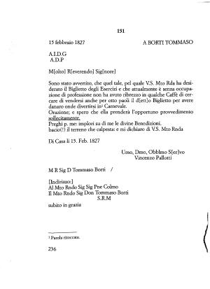 Il Mto Rndo Sig Don Tommaso Borti S . R . M subito in grazia